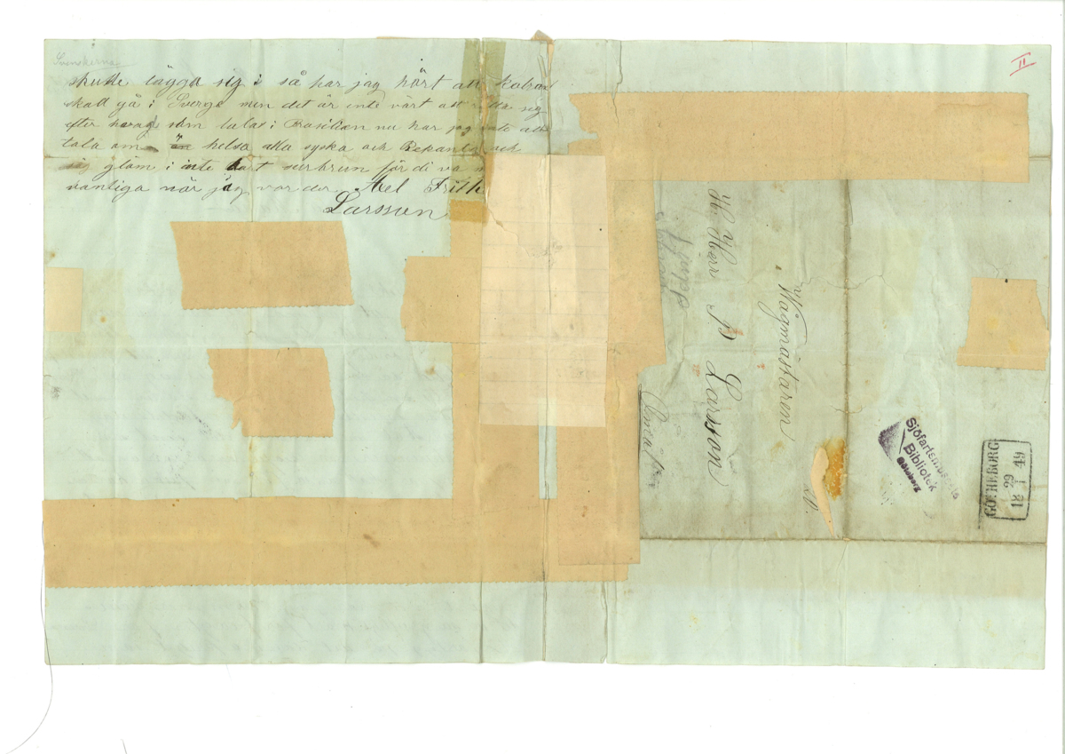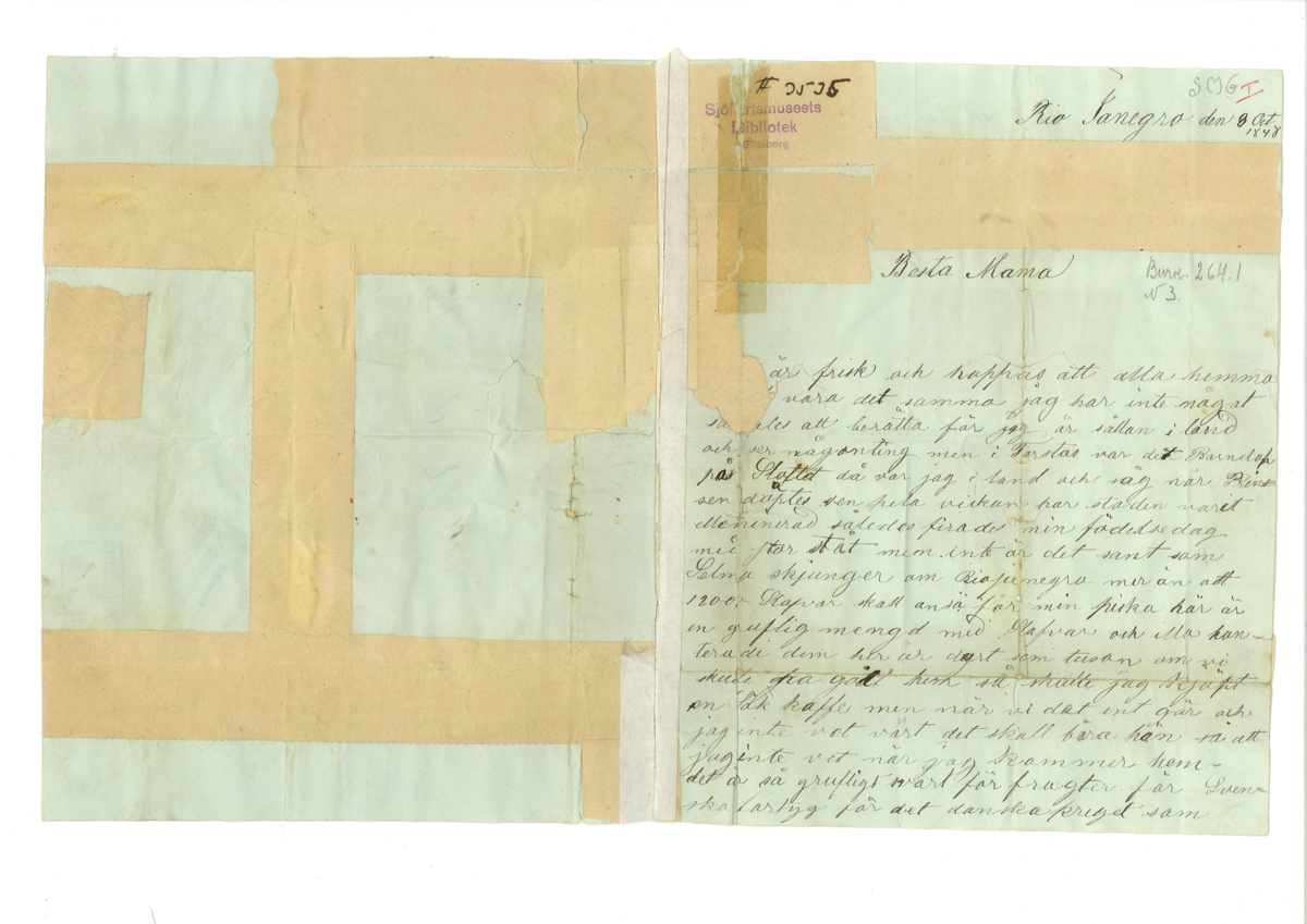 Handskrivet brev från kapten Larssons bror Petter till brödernas mor.
