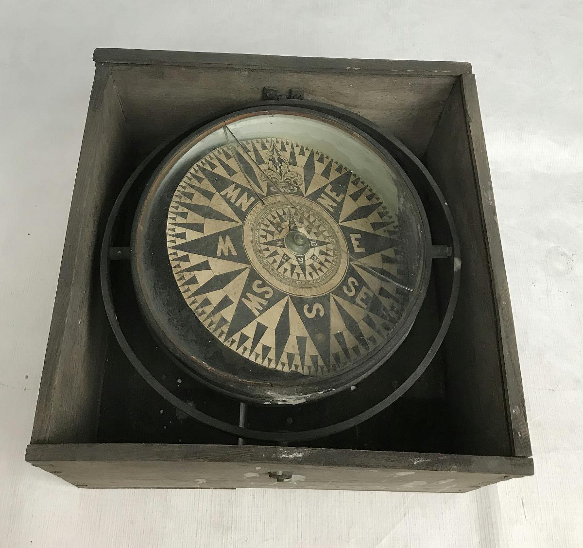 Gå tillbaka till sökLägg till i Min samlingKopiera länkSkriv utKompass i trälådaAktörerHalvor Sangevald, Tillverkare John E. Olson (1849 - 1937), Förvärvat frånKategorispritkompass (Navigation, kursmätning, Kompass) NavigationGeografiArendal (Europa, Norge, Augt-Agder)DimensionerHöjd 15,50 cm Diameter 21,30 cmInventarienummerSMG4155UtställdInte utställd på museetBeskrivningGlaset på kompassen är sönder.