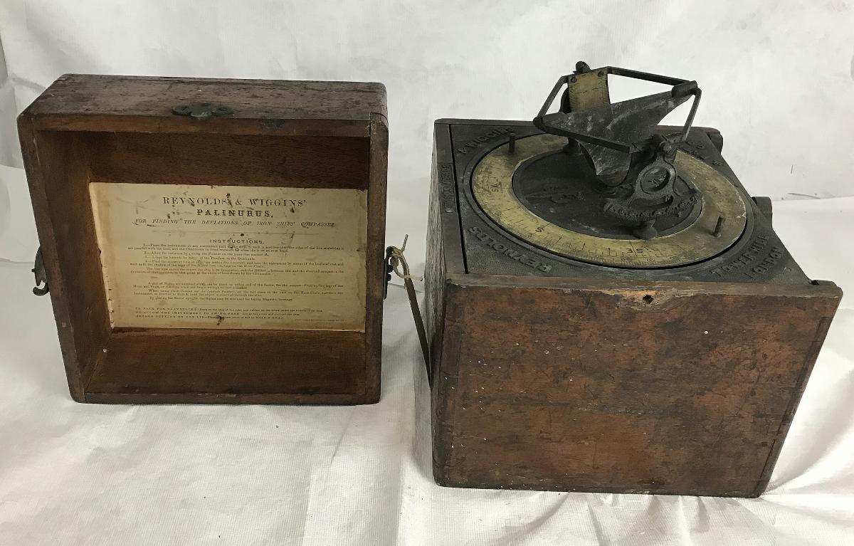 Gå tillbaka till sökLägg till i Min samlingKopiera länkSkriv ut'Palinurus' instrument för justering av kompasserAktörerReynolds & Wiggins, Tillverkare John E. Olson (1849 - 1937), Förvärvat frånKategoriPejlinstrument (Navigation, kursmätning)DimensionerHöjd 29,00 cm Diameter 23,00 cmInventarienummerSMG4172UtställdInte utställd på museetBeskrivningFörvaras i låda.