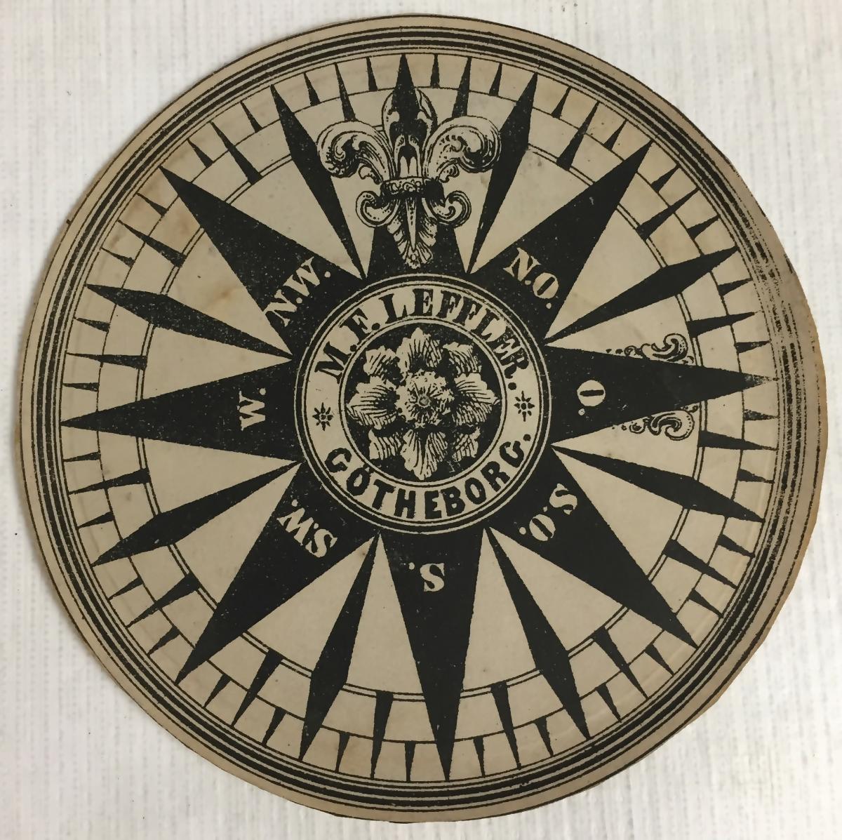 Gå tillbaka till sökLägg till i Min samlingKopiera länkSkriv utKompassrosAktörerG W Lyth (1861 - 1914), Tillverkare John E. Olson (1849 - 1937), Förvärvat frånKategoriKompassros (Navigation, kursmätning)GeografiStockholm (Europa, Sverige, Uppland, Stockholms)MärkningSignatur: M F Leffler, GötheborgDimensionerDiameter 10,30 cmInventarienummerSMG4287UtställdInte utställd på museet