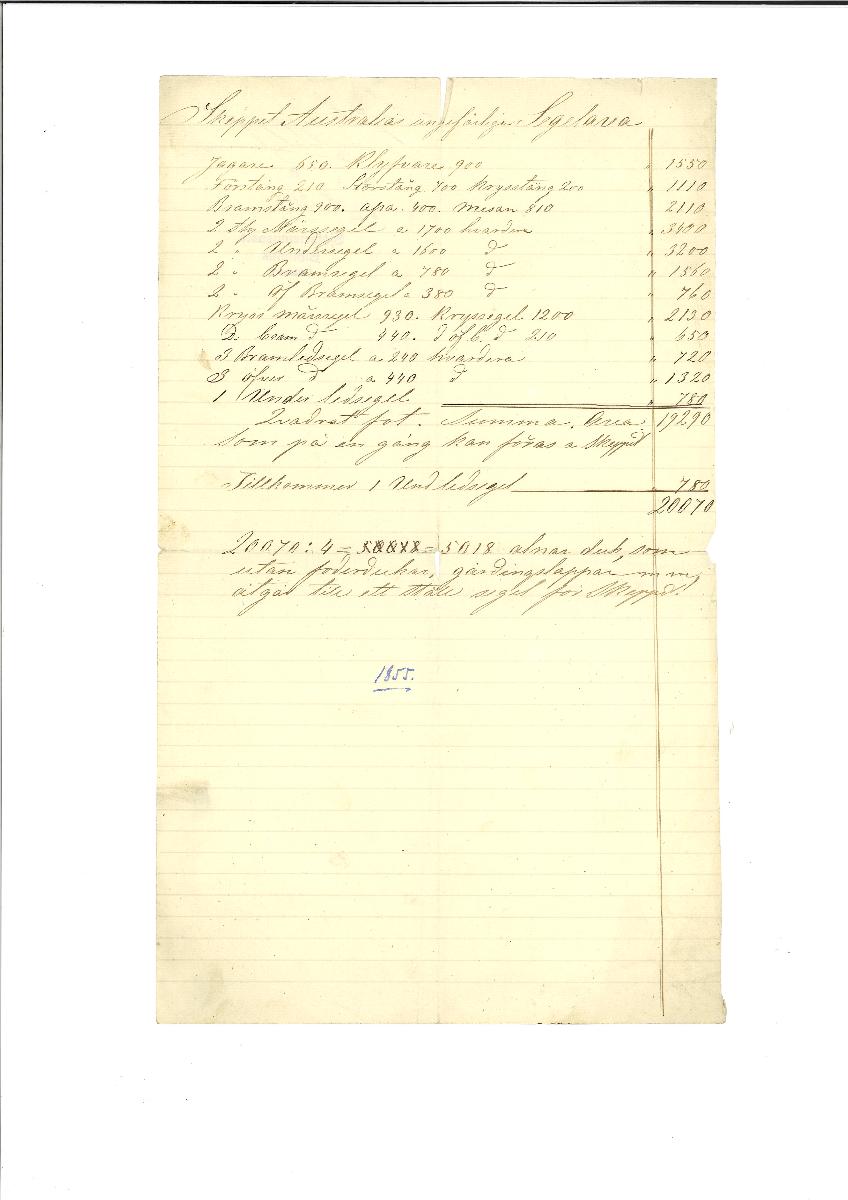 Gå tillbaka till sökLägg till i Min samlingKopiera länkSkriv utSegeluppgifter om AUSTRALIA av kapten StrömbergAUSTRALIA, 1845, tremastad fullriggareAktörerJohan Ferdinand Strömberg (1825 - 1894), Brukare Rolf Strömberg (1873 - 1941), Förvärvat frånKategoriövriga dokument (Dokument, handlingar)FartygAUSTRALIA, 1845, tremastad fullriggareFartygstyptremastad fullriggareInventarienummerSMG5156UtställdInte utställd på museet