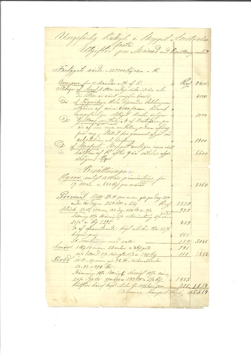 Kalkyl för AUSTRALIAS utgifter av kapten Strömberg