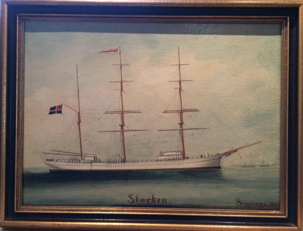 Gå tillbaka till sökLägg till i Min samlingKopiera länkSkriv utOljemålningSTORKEN, 1880, tremastad barkAktörerRederi AB Örnen (1873 - 1893), RederiKategorisegelfartyg (Fartygstyp) Fartygsporträtt (Konst)FartygSTORKEN, 1880, tremastad barkFartygstyptremastad barkMaterial och teknikduk, oljaDimensionerGrundmått 55,00 x 64,00 cmInventarienummerSMG5241UtställdInte utställd på museet