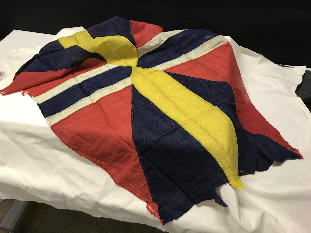 Gå tillbaka till sökLägg till i Min samlingKopiera länkSkriv utFlagga med unionsmärketAktörerKungliga marinförvaltningen (1878 - 1968), Förvärvat från Känsö Karantänstation (1819 - 1934), BrukareKategorinationsflagga (Flagga)GeografiKänsö (Europa, Sverige, Västergötland, Västra Götalands, Göteborg)Material och tekniktextilDimensionerGrundmått (L,B,H) 70,00 x 85,00 cmInventarienummerSMG6403UtställdInte utställd på museet