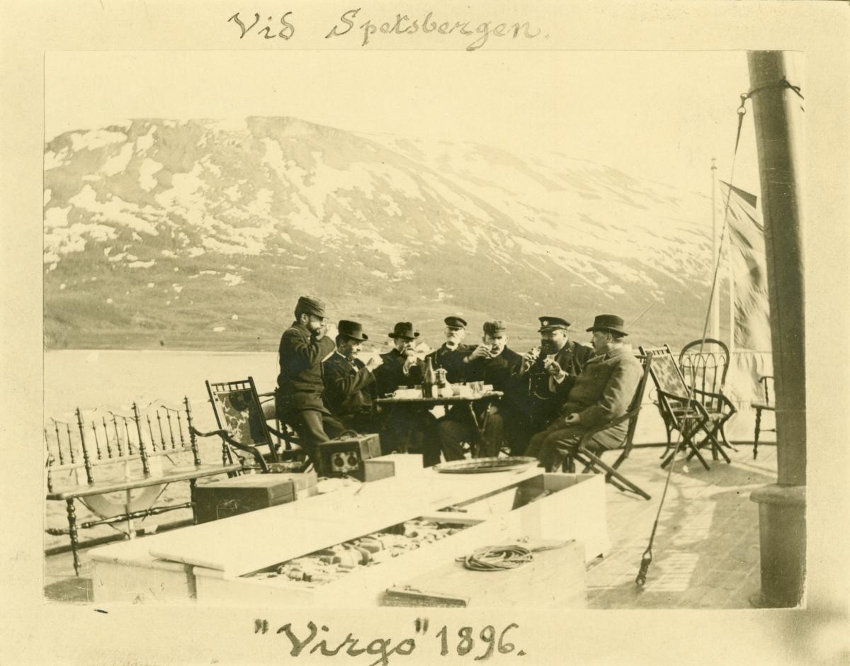 Gruppbild tagen ombord polarfartyget VIRGO år 1896. Personer från vänster till höger: