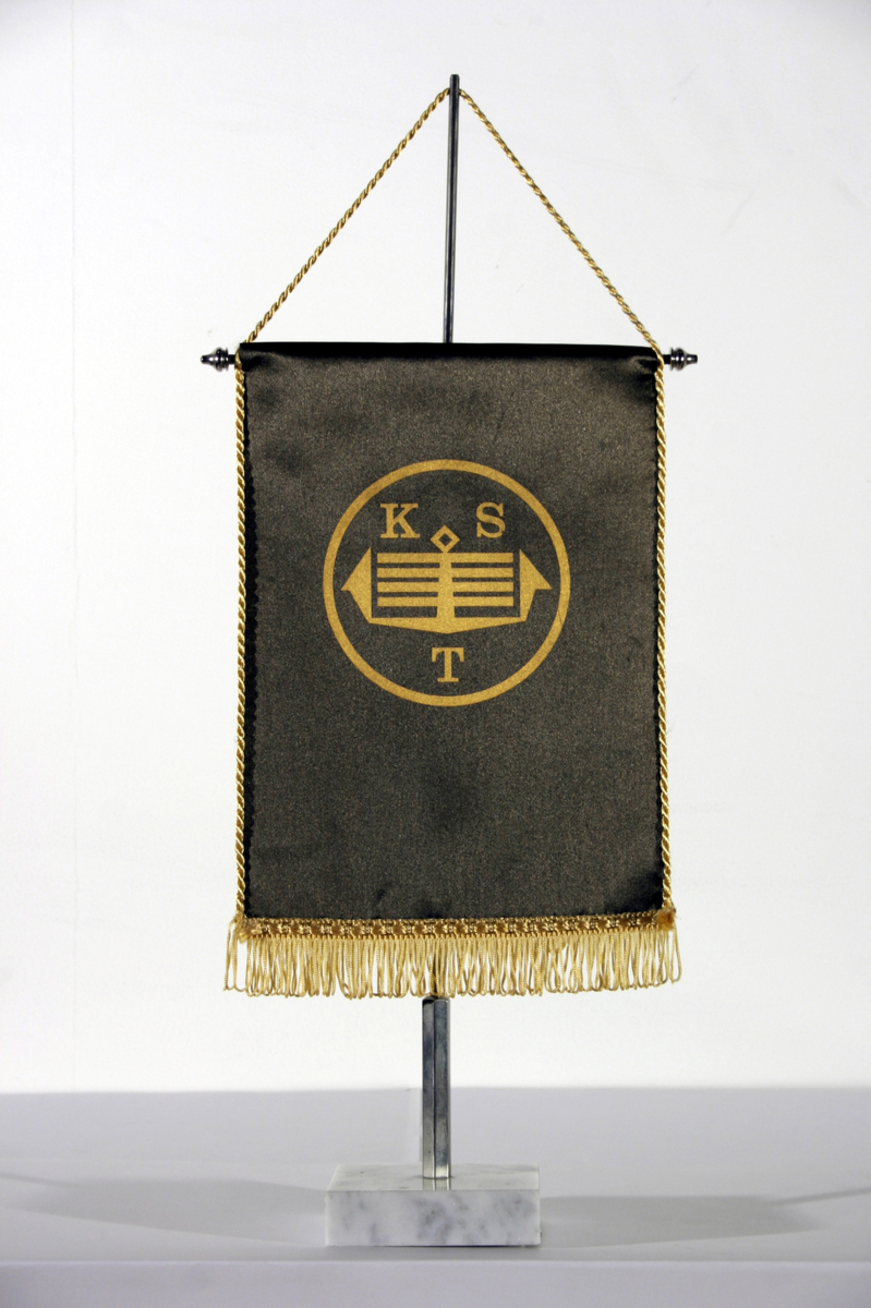 Stång av rund förnicklad metall med sexkantig nederdel. Bottenplatta av fyrkantig marmor.