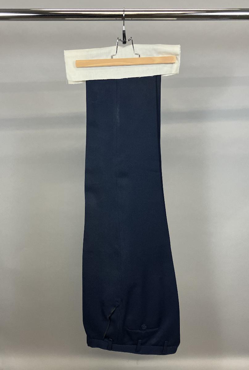 Byxor för vinterbruk. a/. Mörkblå dubbelknäppt vinterkavaj. b/. Vinterbyxor c/. Skjorta / vit d/. Slips / svart e/. Halsduk f/. Vintermössa