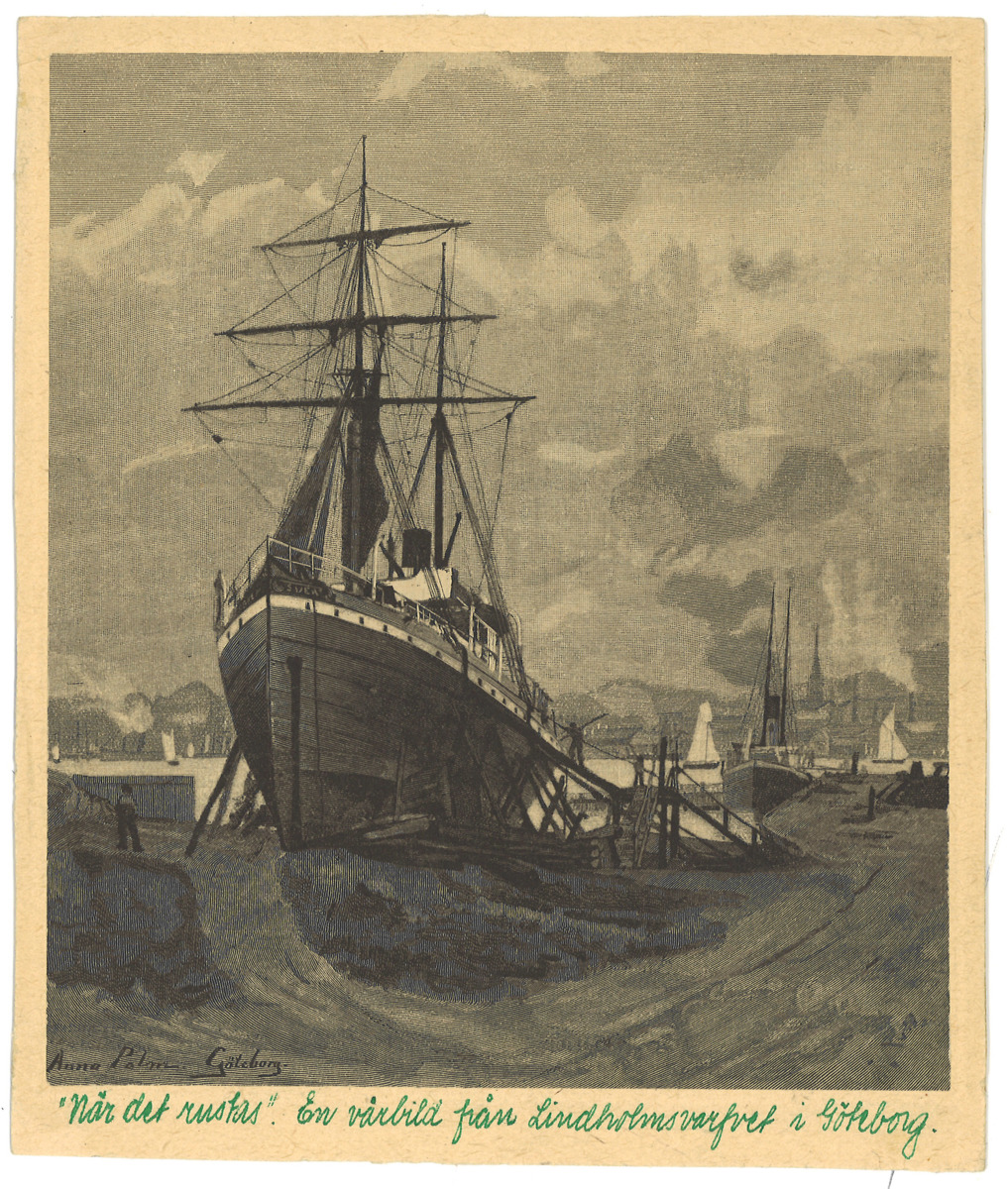 Påskrift: "När det våras" En vårbild från Lindholmsvarfvet i Göteborg