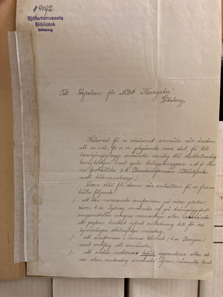 Gå tillbaka till sökLägg till i Min samlingKopiera länkSkriv utSkrift från elever på SVITHIODSVITHIOD, 1881, fyrmastad barkAktörerRederi AB Navigator (omkring1905 - 1935), BrukareKategoribrev (Dokument, handlingar, korrespondens)FartygSVITHIOD, 1881, fyrmastad barkFartygstypskolskeppInventarienummerSMG9492UtställdInte utställd på museetBeskrivningSkrift från elever på SVITHIOD angående uniformer och