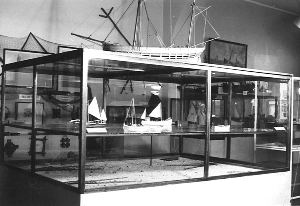 Diorama bestående av två delar som visar snurrevadsfiske från olika tider.