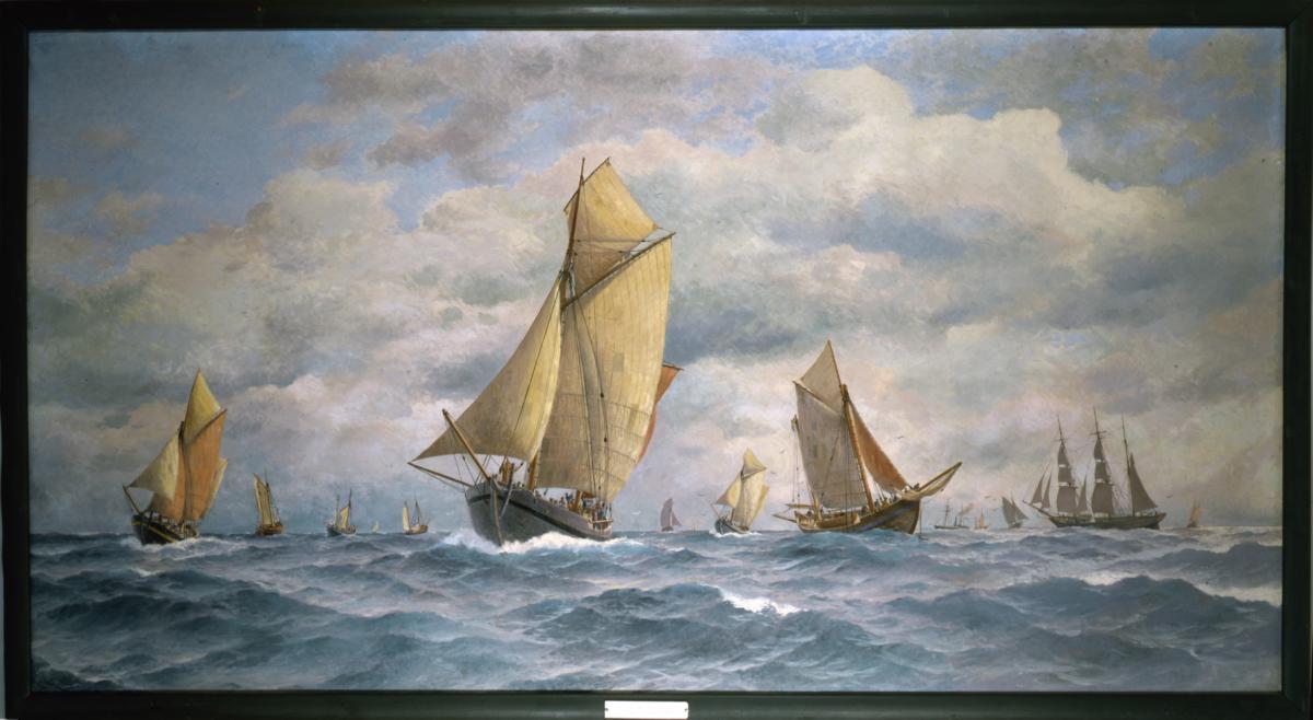 Oljemålning föreställande bankfiskebåtar från 1860-talet