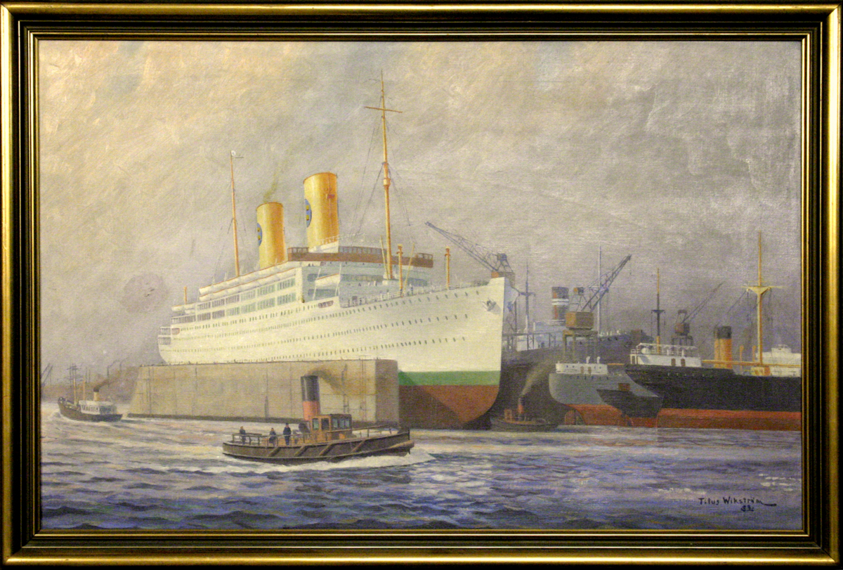 Gå tillbaka till sökIn CopyrightLägg till i Min samlingKopiera länkSkriv utOljemålning KUNGSHOLM i flytdocka på GötaverkenAktörerSvenska Amerika Linien (SAL) (1915 - 1975), Rederi Götaverken (1841 - 2014), Avbildad Titus Wikström (1887 - 1979), Konstnär Titus Wikström (1887 - 1979), Förvärvat frånKategoriSkeppsvarv, mekanisk verkstad (Konst)FartygKUNGSHOLM, 1928, passagerarfartygFartygstyppassagerarfartyg flytdockaDateringTillkomsttid 1932 Tillkomsttid 1932Material och teknikoljaInventarienummerSMG5112UtställdInte utställd på museet