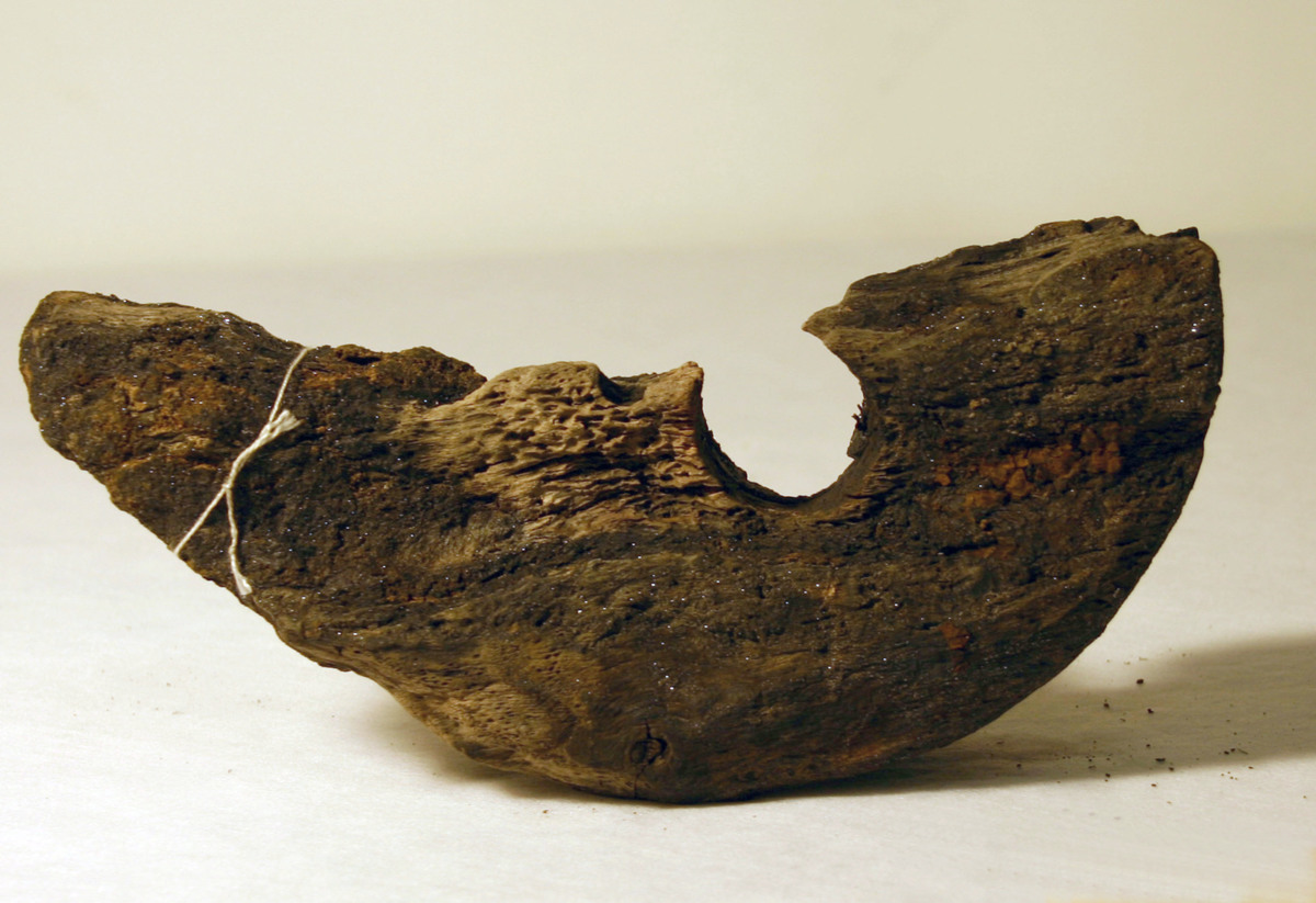 Del av jungfru. Hårt eroderad. Möjligen recent i förhållande till fornlämningen; droppformad och med stålband istället för tågvirke/ansluten till röstjärn.