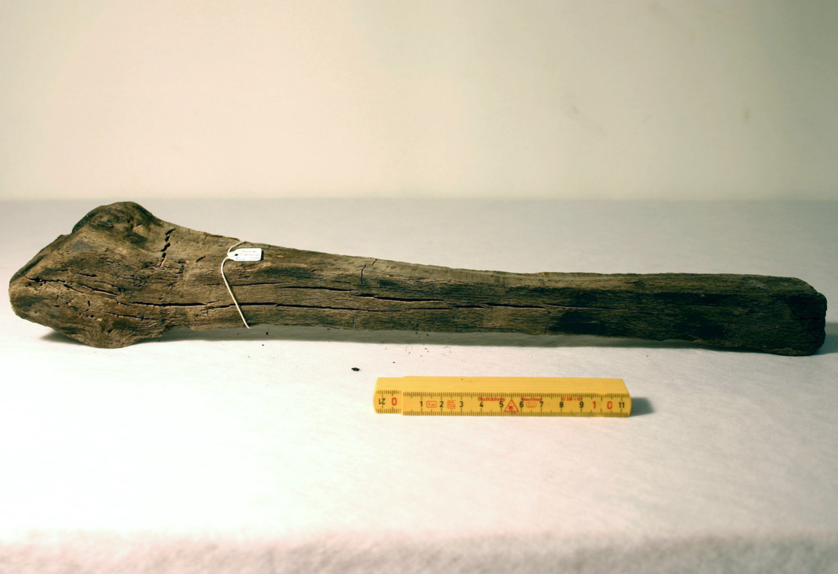 Stavformat timmer. Defekt/eroderat. Klupmformad ände.