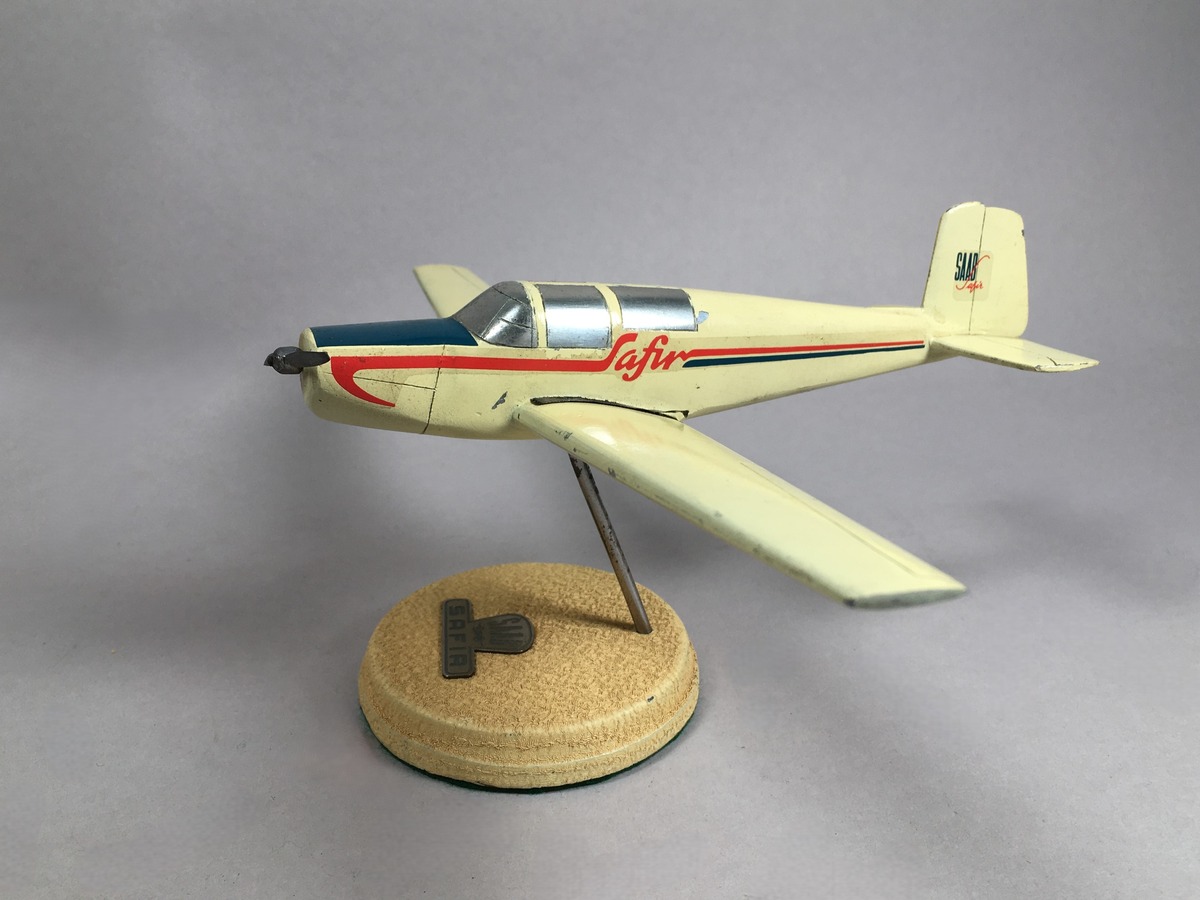 Gå tillbaka till sökLägg till i Min samlingKopiera länkSkriv utFlygplansmodell Saab SafirAktörerSAAB AB, TillverkareKategoriFlyget fullmodell (Modell) ModellMaterial och teknikmetallDimensionerGrundmått (L,B,H) 15,50 x 21,50 x 10,00 cmInventarienummerSMG31152UtställdInte utställd på museetBeskrivningSaab SafirRelaterade temanFlyget