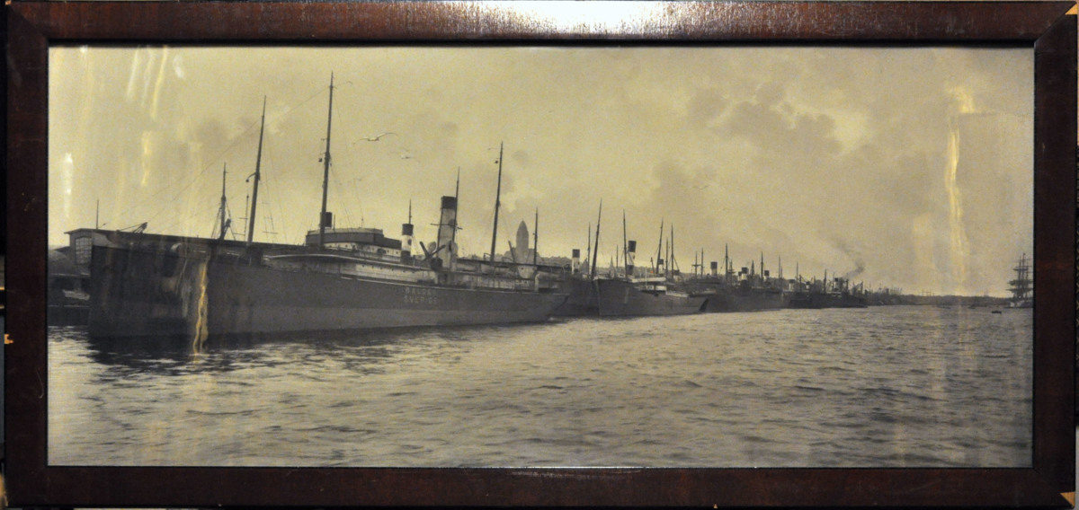 Fotografi upplagda Lloydbåtar i Göteborgs hamn 1917