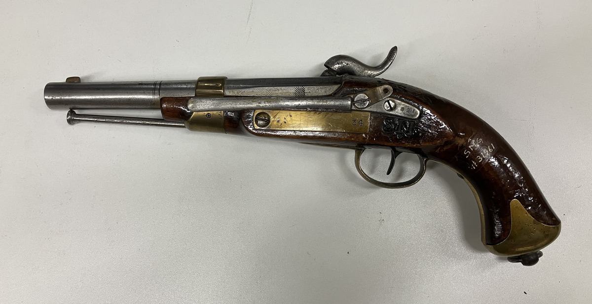 Flottans reparationsmodell från 1840-talet. Pipa och lås från flintlåspistol från 1700-talet.