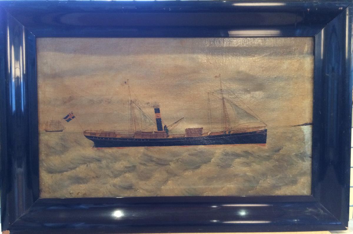 Fartygsporträtt med kraftigt gulnad fernissa