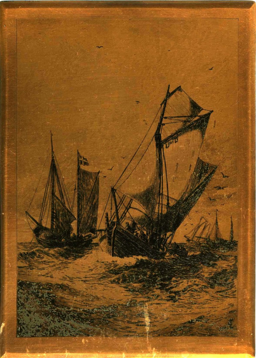 Etsplåt till grafik föreställande svenska bankfiskebåtar