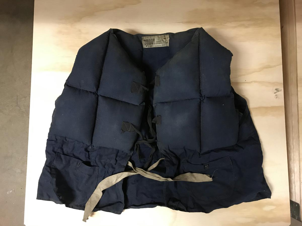 Gå tillbaka till sökLägg till i Min samlingKopiera länkSkriv utLivräddningsvästAktörerAlbin Brodin (1870 - 1947), BrukareKategorilivräddningsutrustning (Fartygsutrustning) SjöräddningMaterial och tekniktextil, kapok, metallDimensionerGrundmått (L,B,H) 110,00 x 53,00 cmInventarienummerSMG34540UtställdInte utställd på museet