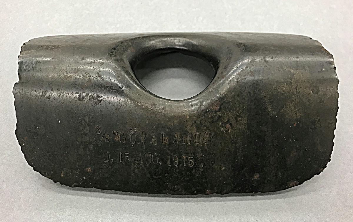 Bordsplåten blev genomborrad av artilleriprojektil under första världskriget, 15 augusti 1915. Projektilen inträngde i maskinchefen Carl Johan Gotthilf Rosells hytt och orsakade hans död.