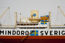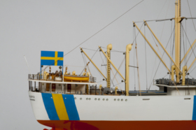 Byggd på Götaverken 1941. Modellen visar fartyget med neutralitetsmärkningar.