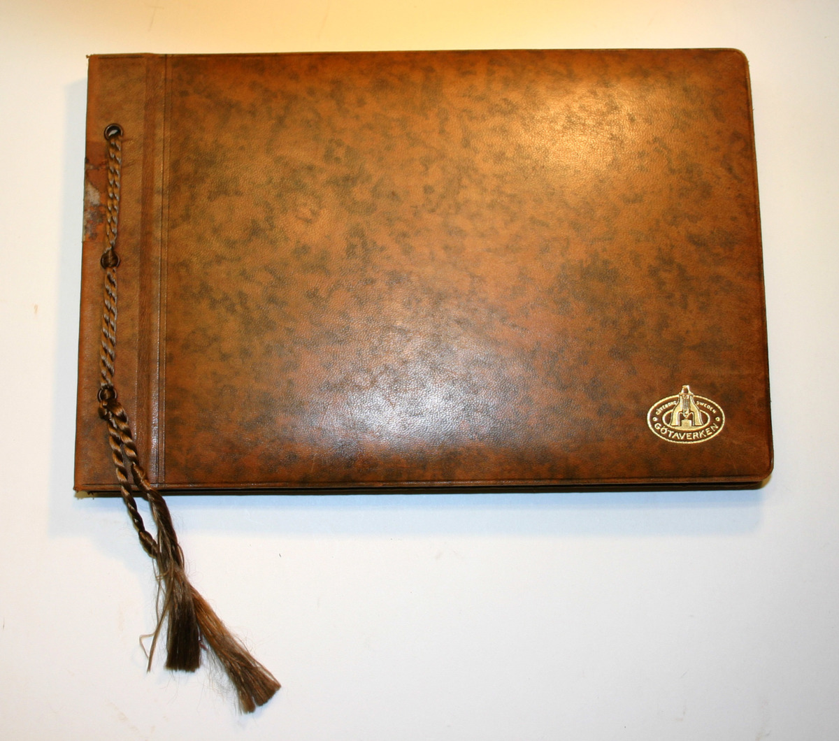 Svartvita fotografier i album av läder från m/s KENGIS:s provtur den 27 juli 1943. Albumet har stoppade läderpärmar i brunt och ombunden rygg med sidensnöre.