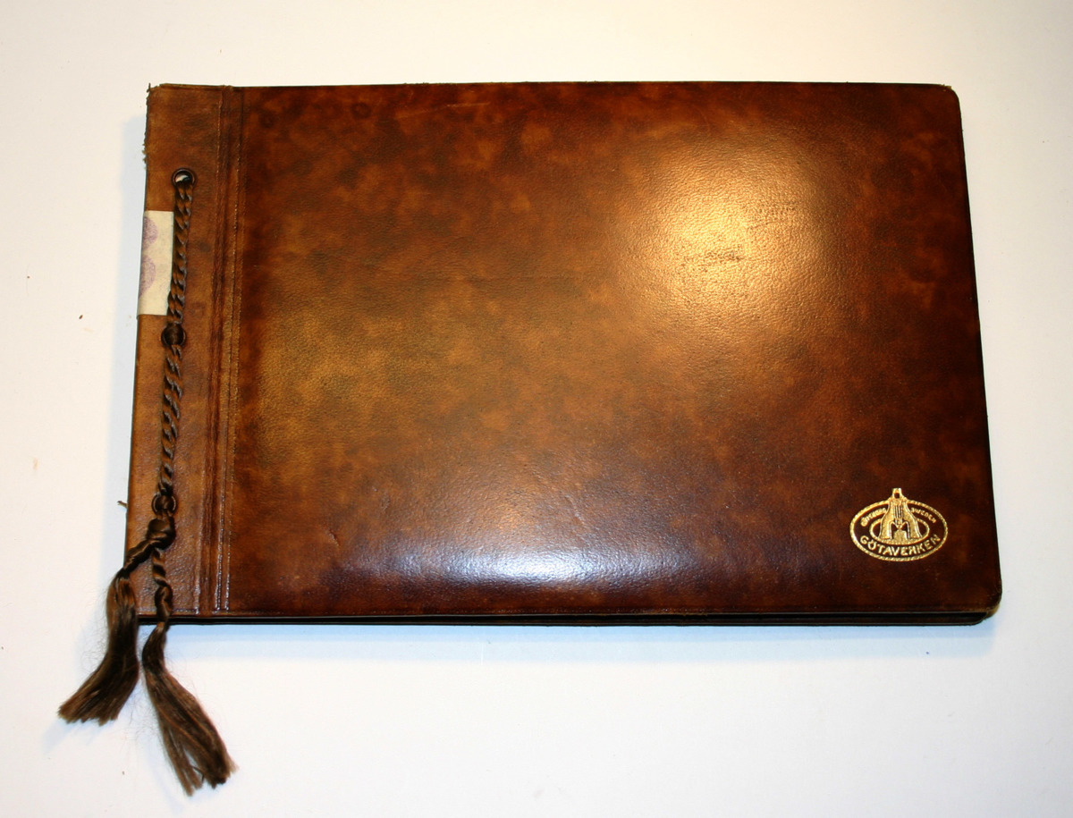 Fotografier från m/s KVIKKJOKK:s sjösättning 2 februari 1945 samt provturen den 11 oktober 1945. Albumet har stoppade läderpärmar i brunt och ombunden rygg med sidensnöre.