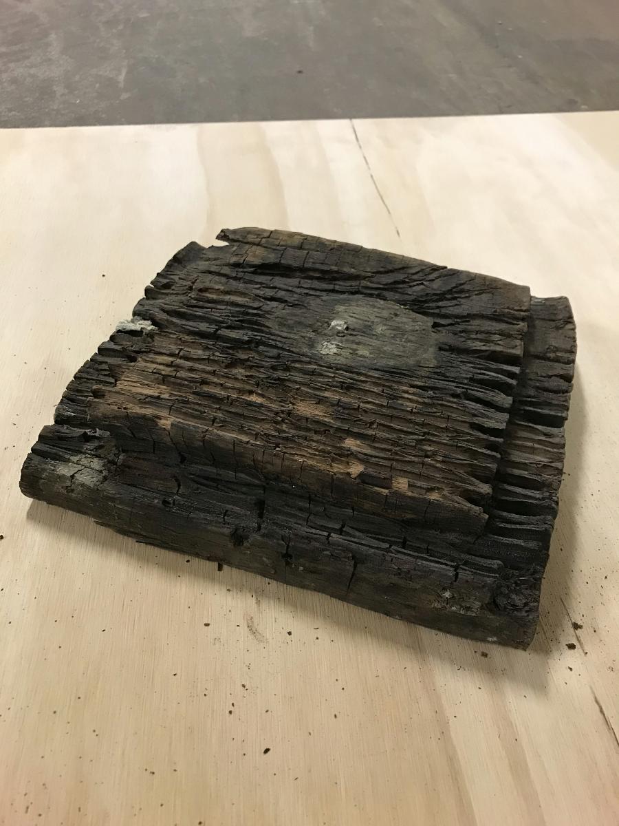 Trälock som blivit polyglycolbehandlat. Hittades av dykare från Göteborgs amatördykarklubb som 1949-1966 genomförde dykningar vid de så kallade Slamansskeppen, i samarbete med Sjöfartsmuseet.
