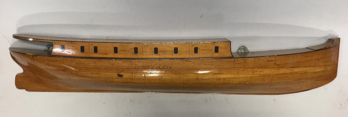 Halvmodell med plåtmarkeringar av Fartyget BYFJORDEN.