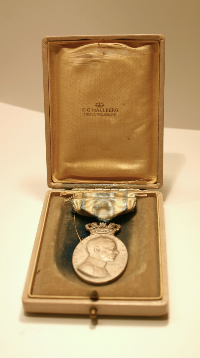 I etui som ej tillhör medaljen, från Hovjuvelerare Hallberg. Information Intendent Christian Thorén.