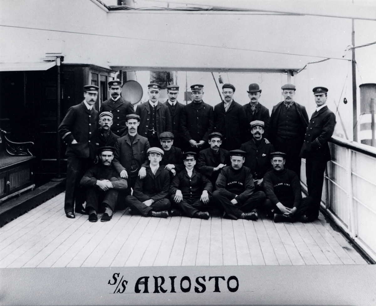 Besättningsbilder från Wilsonlinjens fartyg s/s ROLLO, s/s ARIOSTO, s/s ORLANDO, s/s CALYPSO, s/s VARNA, s/s VINGA, s/s THELMA.