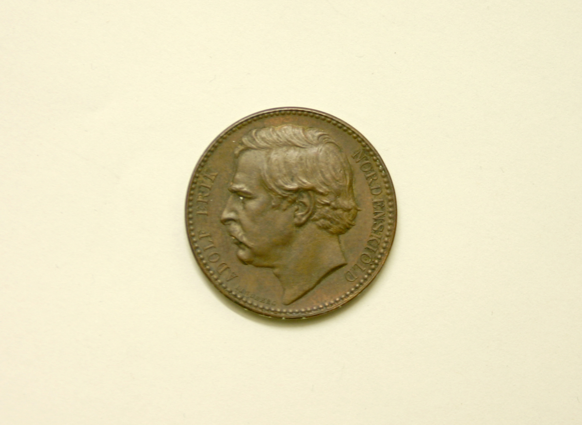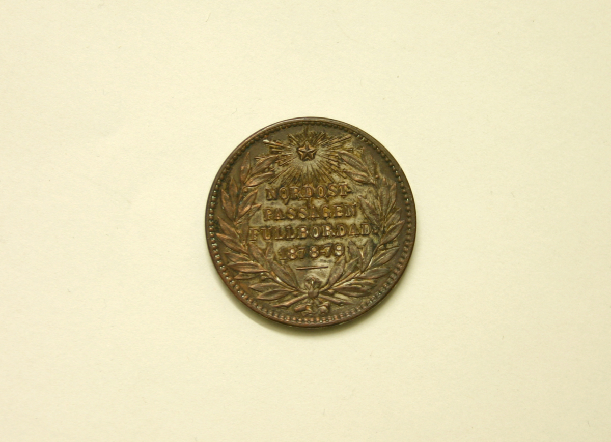 Minnesmedalj från Vegas färd runt nordostpassagen 1878-80 med Adolf Erik Nordenskjölds porträtt på åtsidan. Brons. Information Intendent Christian Thorén.