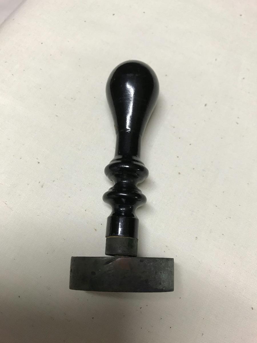 Ovalt sigillstamp med skaft av trä.