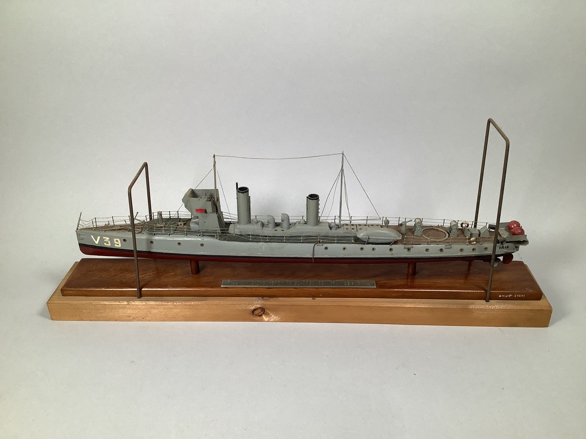 Modellen är fastskruvad på mahognybräda med skylt: Till divisionsch.
