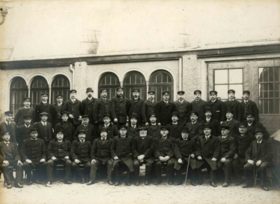 Inramat fotografi grupporträtt Göteborgs Packhuskarlar 1917-18