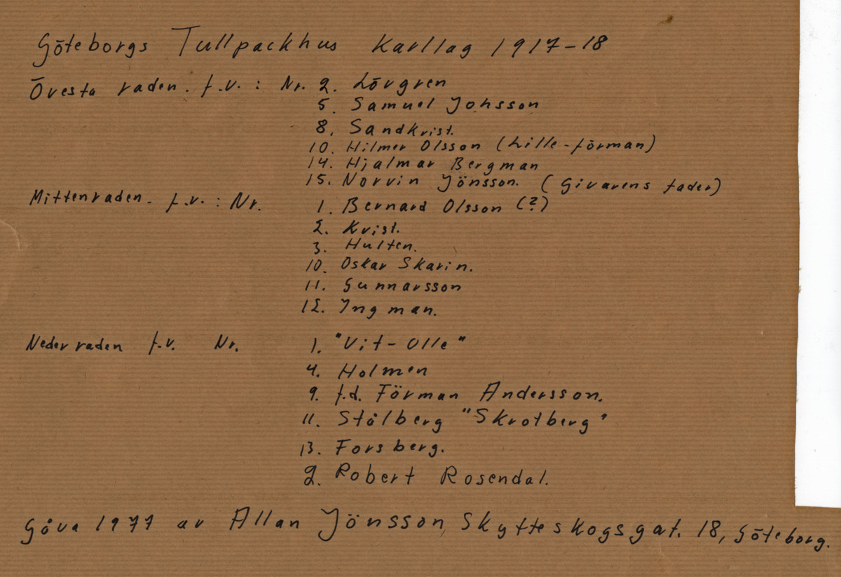 Inramad gruppbild av Göteborgs Packhuskarlar