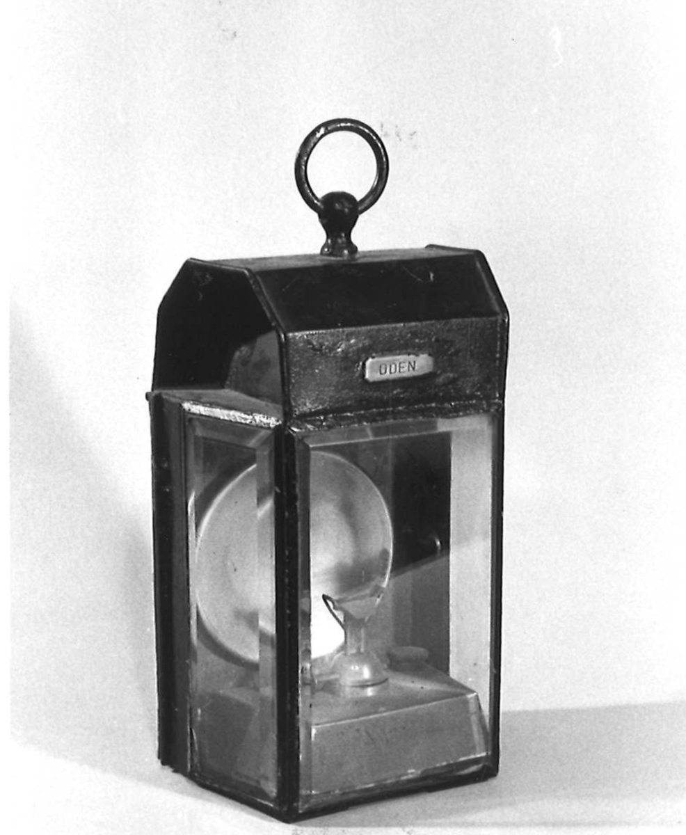 Från pansarskeppet ODEN. Användes tidigare ombord för lysa upp i fartygets gångar och var då monterade på skotten, (väggarna).