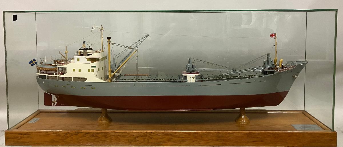 Fartygsmodell i monter EMSEN
