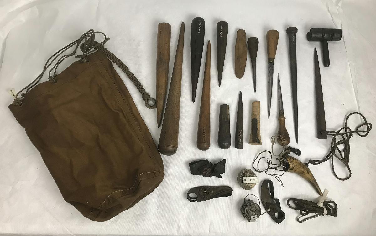 Utrustningen har tillhört segelsömmare Johan August Lindén. Han började arbeta som sjöman under 1800-talets slut, men blev senare professionen segelsömmare.