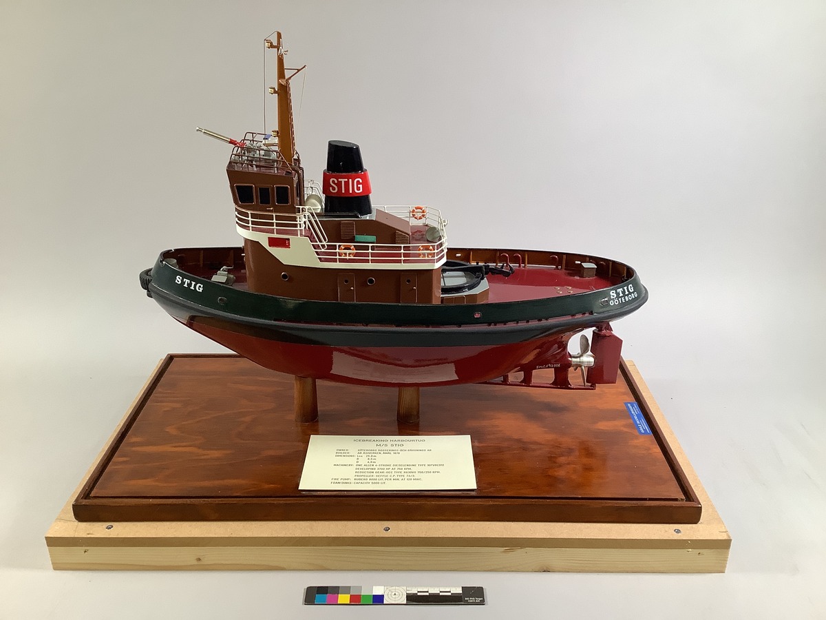 Gå tillbaka till sökLägg till i Min samlingKopiera länkSkriv utModell, b/b STIGSTIG, 1976, bogserbåtAktörerGöteborgs Bogserings- och Bärgnings AB (GBAB) 'Röda Bolaget' (1872 - ), Anknytning till Gävle Modellbyggeri, TillverkareKategorifullmodell (Modell) motorfartyg (Fartygstyp)FartygSTIG, 1976, bogserbåtDimensionerGrundmått (L,B,H) 58,50 x 29,50 x 42,00 cmInventarienummerSMG42596UtställdInte utställd på museet