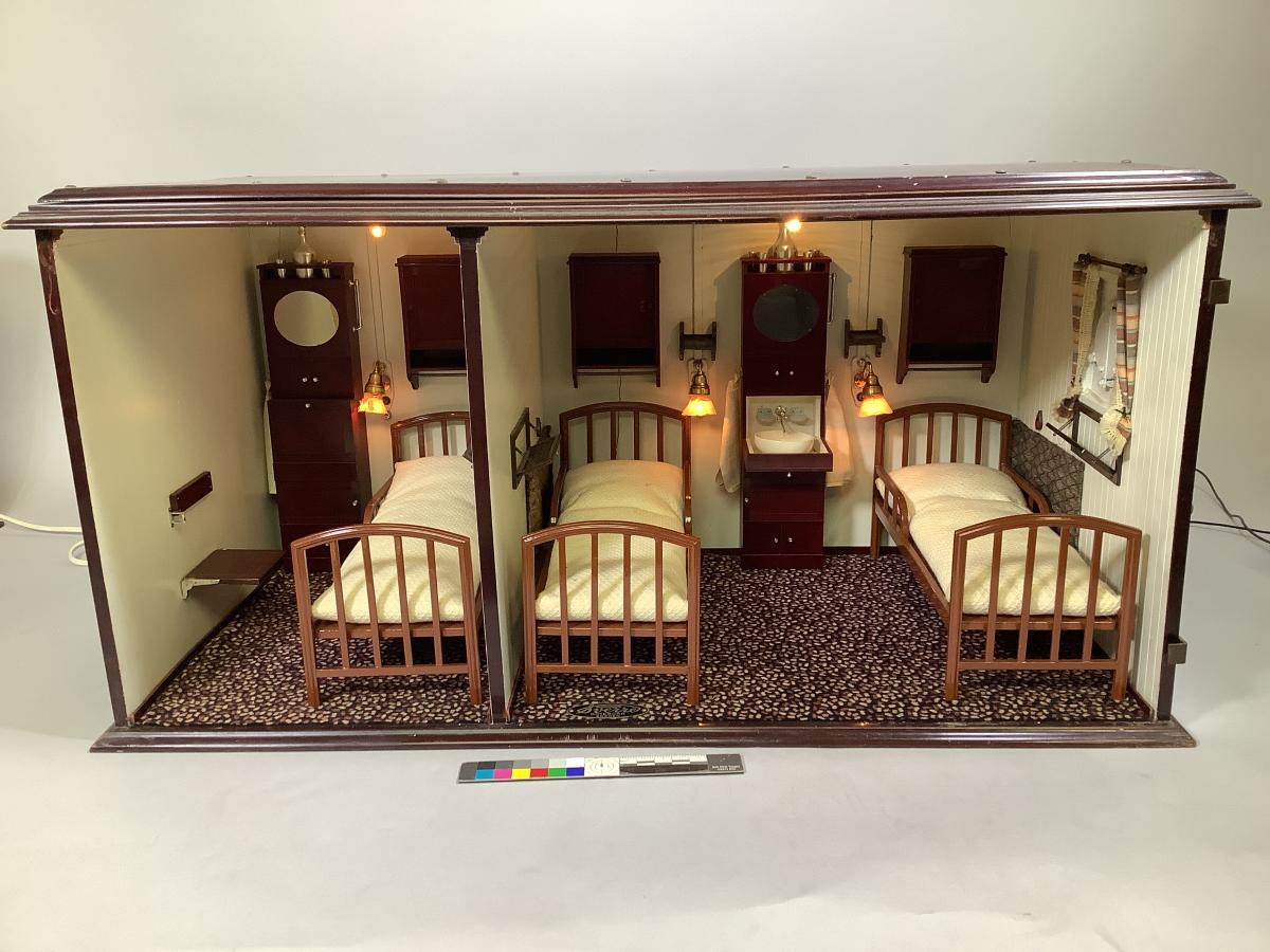 Modell hytt 1:a klass enbädds- och tvåbäddshytt på D-däck ombord GRIPSHOLM