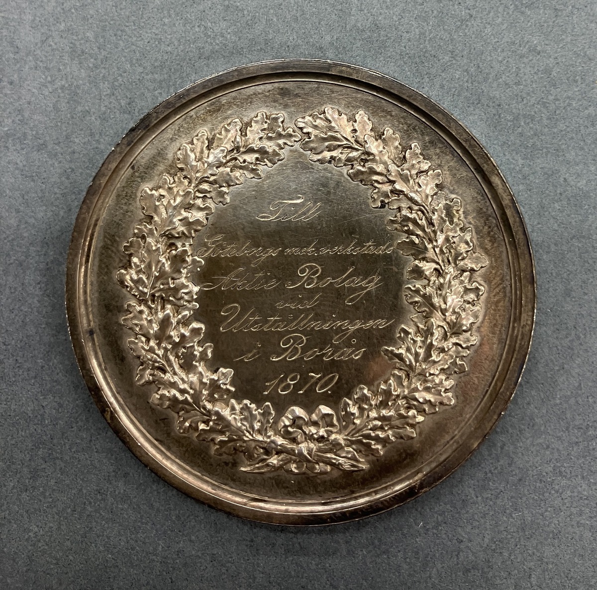 Gravyr: Till Göteborgs mek. verkstads Aktie Bolag vid Utställningen i Borås 1870.
