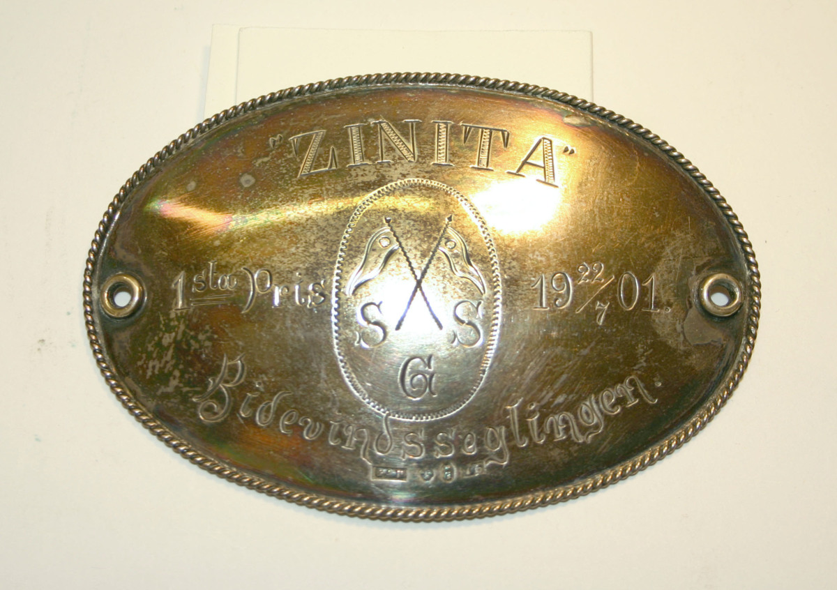Gravyr: 'Zinita GSS 1sta Pris 22/7 1901 Bidevindsseglingen
