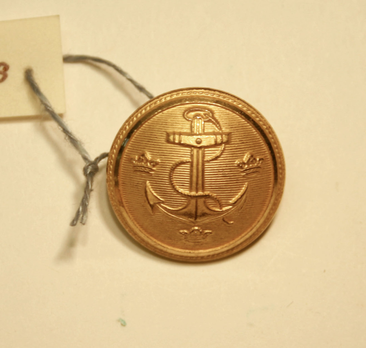 Gå tillbaka till sökPublic DomainLägg till i Min samlingKopiera länkSkriv utKnapp för officerAktörerSvenska marinen (1522-), Anknytning tillKategoriknapp (Kläder, klädesdetalj) MarinenGeografiSverige (Europa)Material och teknikmässingDimensionerHöjd 1,20 cm Diameter 2,20 cmInventarienummerSMG42361, aUtställdInte utställd på museetBeskrivningKnapp m/1878 officer flottan.