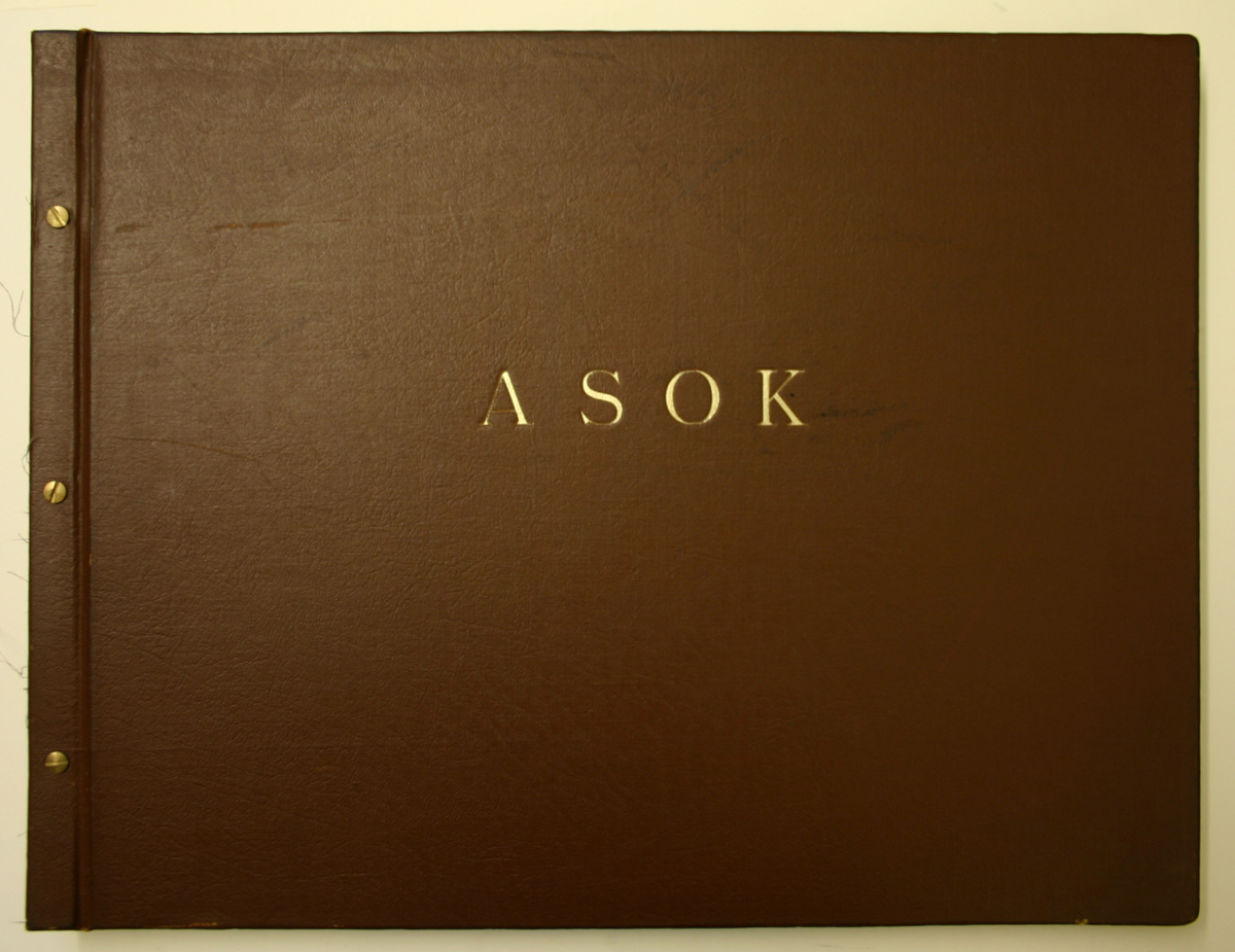 Fotografialbum brun pärm i konstläder med fotografier ( mest svartvita) och bildtexter till fartyg från ASOK, AB Svenska Ostasiatiska kompaniet.