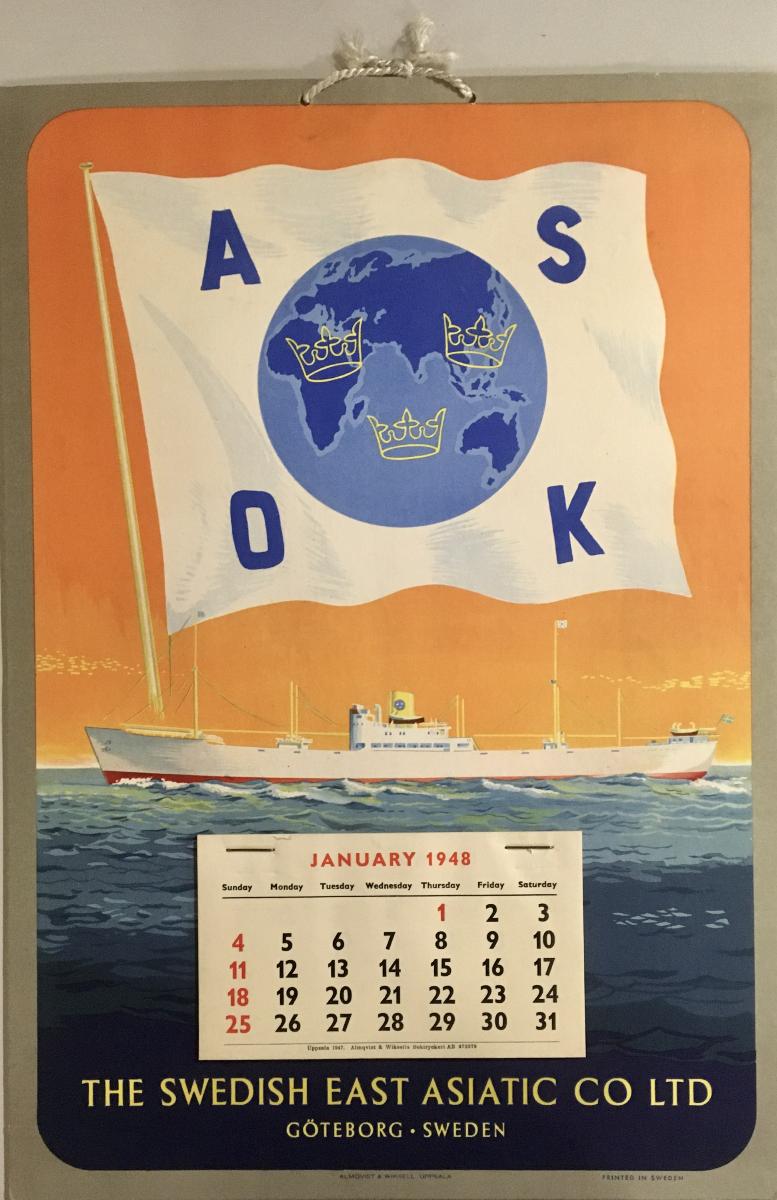 Gå tillbaka till sökLägg till i Min samlingKopiera länkSkriv utKalenderAktörerAB Svenska Ostasiatiska Kompaniet (ASOK) (1907 - 1978), Anknytning tillKategorialmanacka (Dokument, handlingar)Datering1948Material och teknikpapper, tryckMärkningTryck: The Swedish East Asiatic Co. Ltd., 1948InventarienummerSMG42783UtställdInte utställd på museetBeskrivningRederiflagga med jordglob och fartyg.