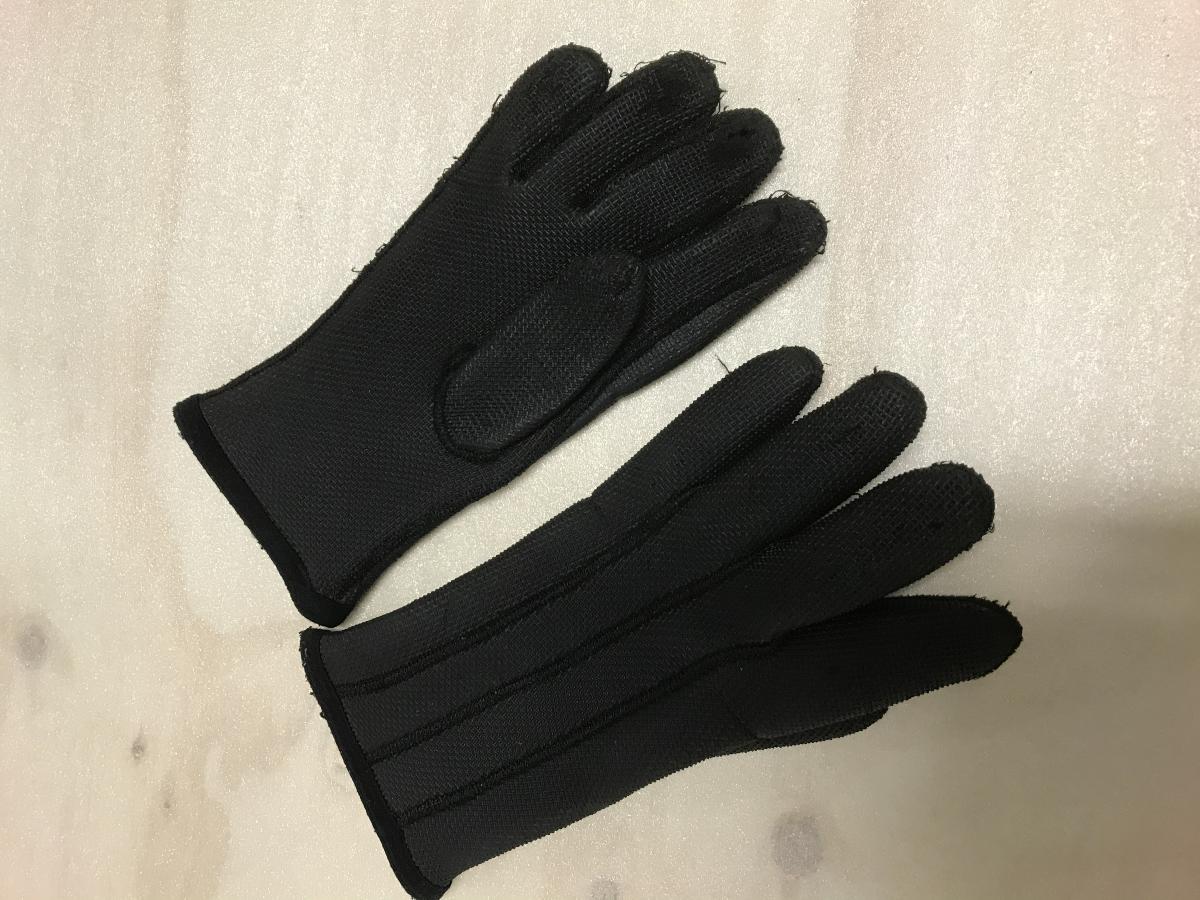 Dykarhandske, par, femfingerhandske av svart gummi, sömmad av två stycken och tumme, bård av syntetfiber vid kragen,tre sömmar på ryggen.