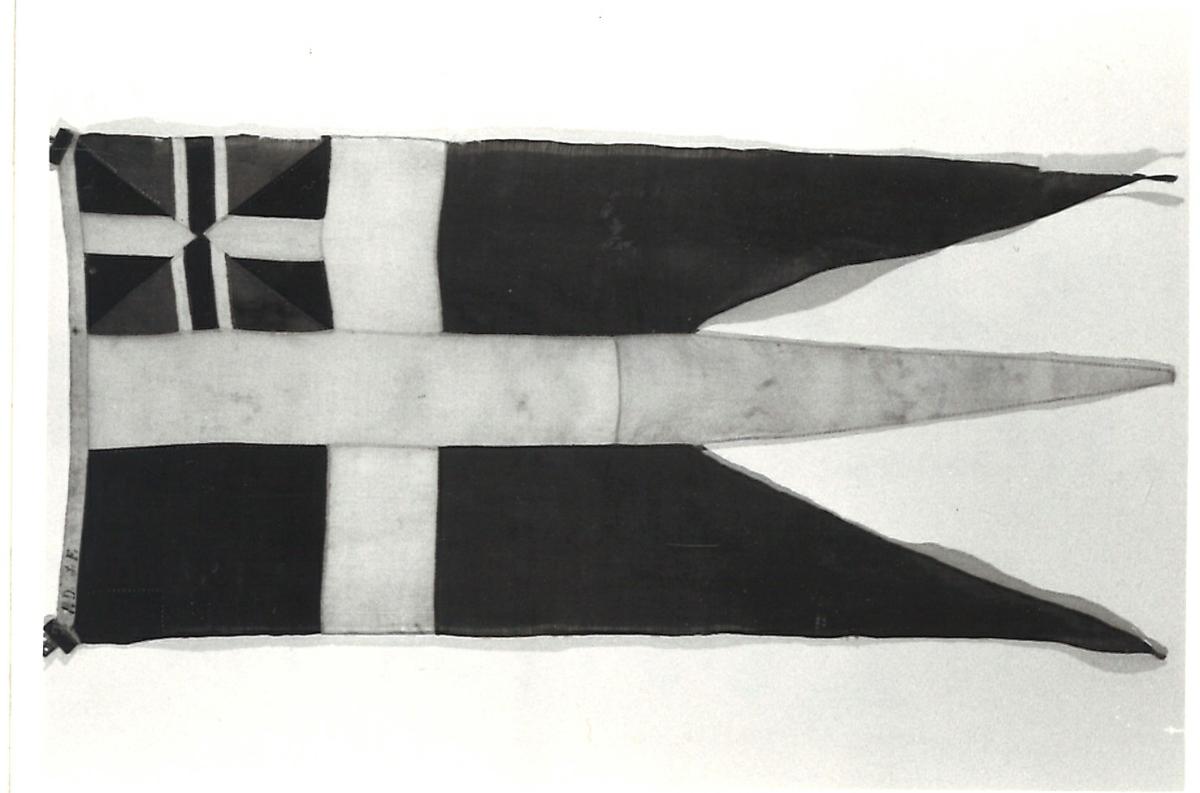 Flaggan funnen av Albin Sjögren i en helbox ombord ett svenskt örlogsfartyg, troligtvis en torpedbåt.