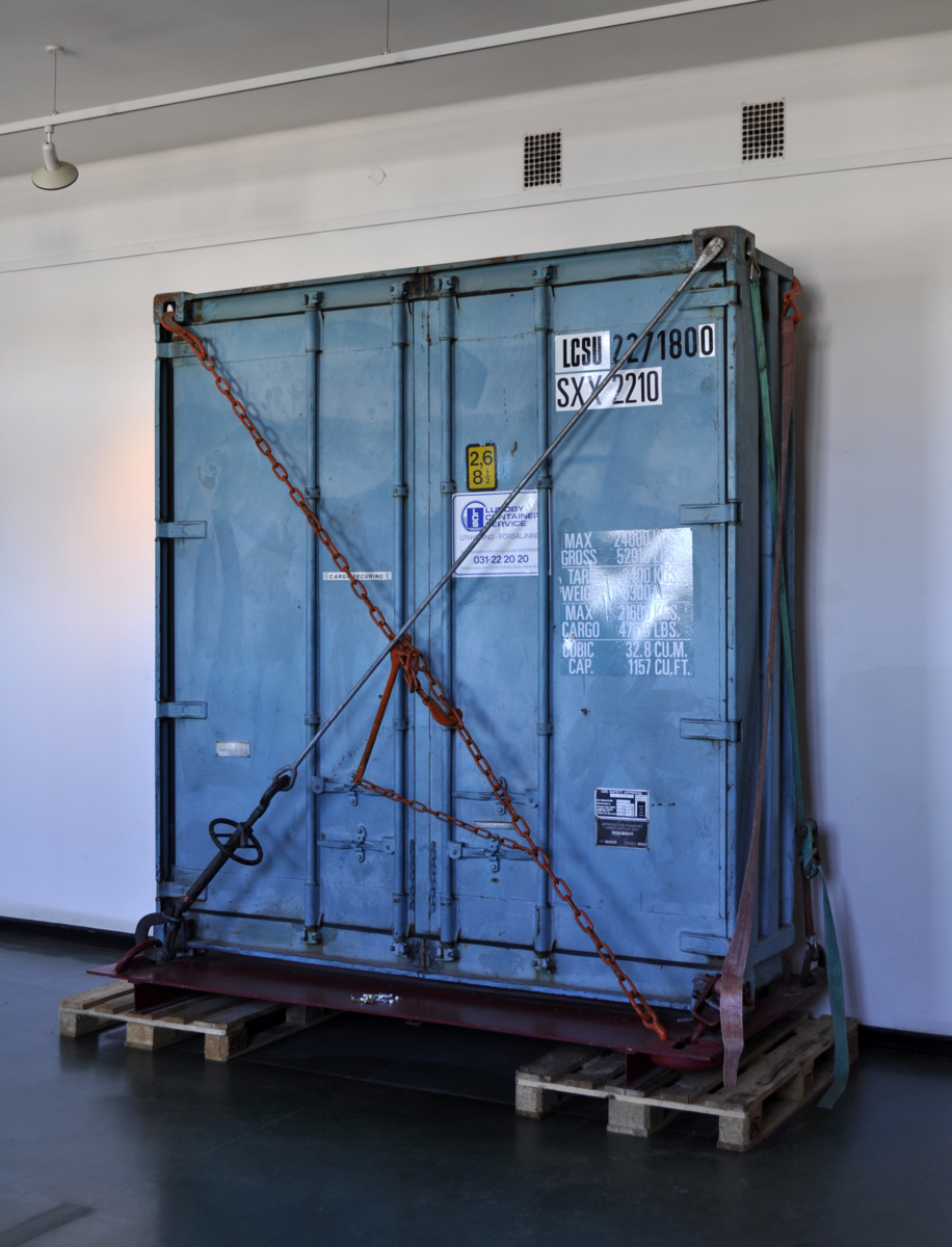 Containern är avkapad på längden och på tvären. Den består av främre delen med portar och är blålackerad med sidorna av korrugerad plåt. Två portar med dubbla lås av spanjolettyp (stångregel), portarna hänger på vardera fyra gångjärn. I varje hörn av containern finns hörnlådor (fästen) för surrningsutrustning. Containern har inge botten utan står direkt på däck (SMG42969,b), och är fastsatt med twistlock och bandwinschar i hörnen.